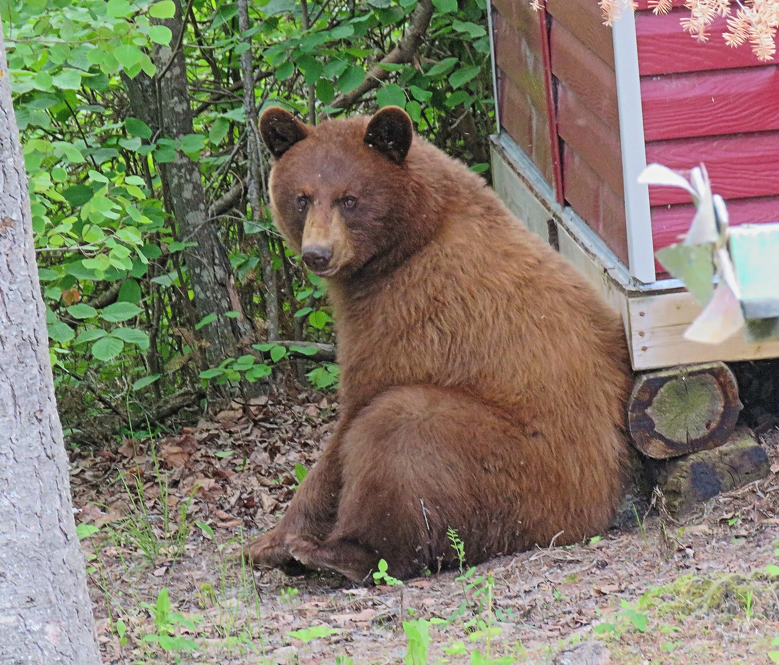 Cinnamon Black Bear in our Yard on Pinawa Bay